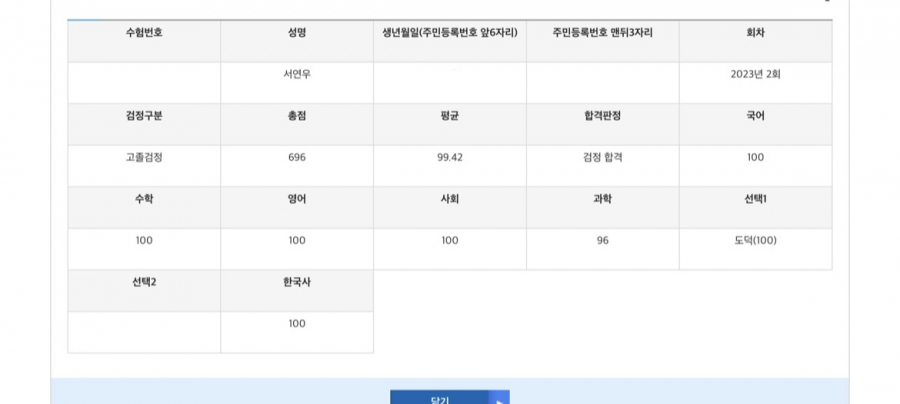 2023 2차 고졸 검정고시 (난이도)최상 상 중상 중하 하