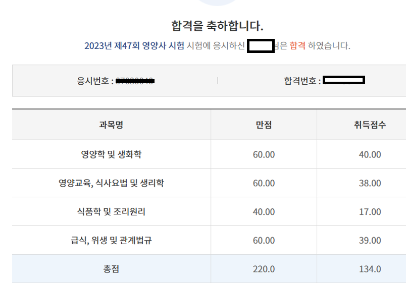 와 진짜 대단하십니다 식품학 조리원리가 아슬아슬했네요 행운입니다. 진심으로 축하드립니다.